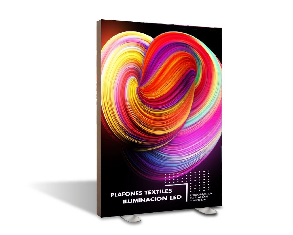 El marco para textil es un sistema de presentación iluminada y flexible, que no sólo es fácil de usar sino también de montar. Esta caja de luz se suministra como un conjunto, equipado con LED, pies de base y resulta muy práctico de transportar en su caja compacta. Fabricamos cajones textiles de cualquier medida para eventos o ferias.